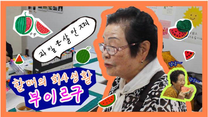 저희의 콘텐츠는 크게 2가지로 구분되는데요. 의도를 가지고 찍는 기획 영상과 일상을 담다 자연스럽게 생기는 에피소드가 있죠. 저는 개인적으로 후자를 선호해요. 예를 들면 여름에 팥빙수 그림을 그리시다가, 어디서 들어본 것 같지만 또 처음 부르는 듯한 “팥빙수야- 녹지말허라아-” 이런 노래를 부르시기도 해요. 이런 찰나의 순간들 때문에 일상 속에 카메라를 켜려고 노력하고 있어요. 어디서 어떤 재미있는 요소가 생길지 모르기 때문이에요.