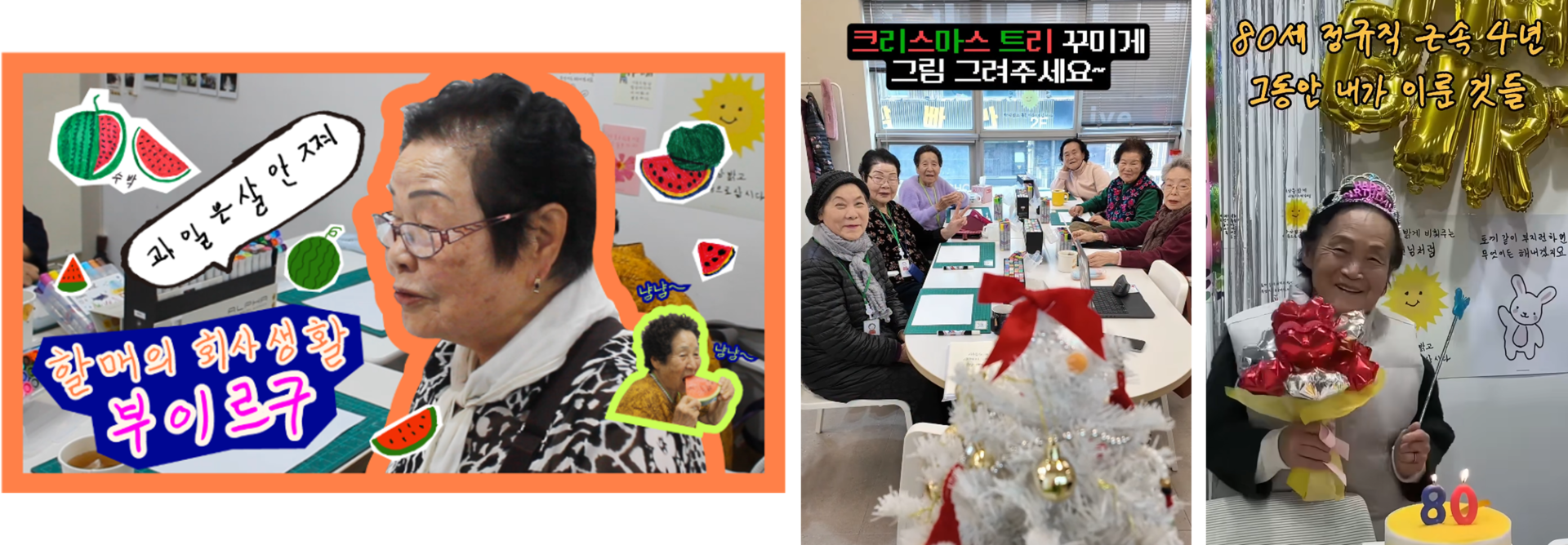 간간히 기획한 콘텐츠를 찍기도 하는데요. 이런 콘텐츠를 찍을 때 저희가 가장 신경쓰는 것은 것은 최대한 저희 청년들의 의도를 담지 않도록 하는 것이에요. ‘기획 콘텐츠인데 의도를 담지 않으려고 한다’ 약간의 모순처럼 느껴지실 수 있을텐데요. 풀어 설명하면 이 콘텐츠의 큰 맥락에 대해서는 어르신들께 설명 드리되, 많은 부분을 어르신들께서 이해하신 그대로 자연스럽게 담으려고 한다는 것이에요. 꾸밈 없는 어르신들의 모습에 이 콘텐츠를 독자 분들이 더 사랑해주시는 것 같아요.